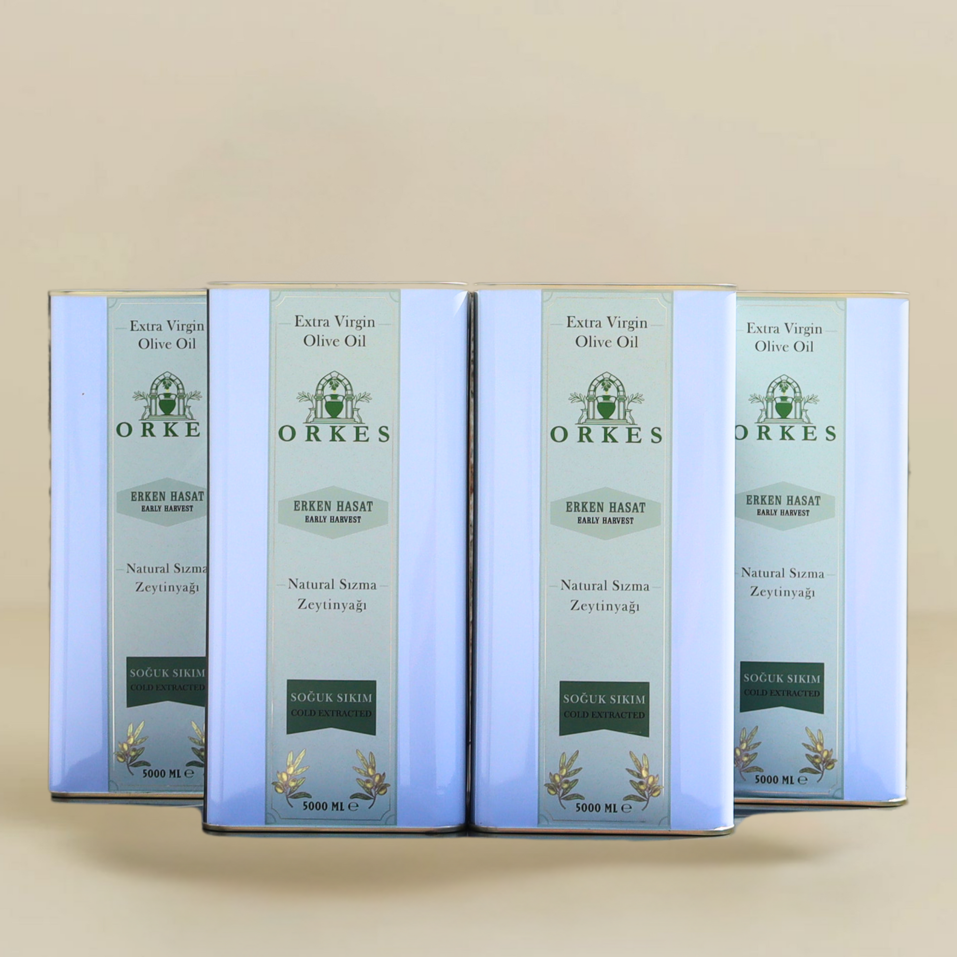 4 adet 5L Soguk sıkım erken hasat zeytinyağı içerir.